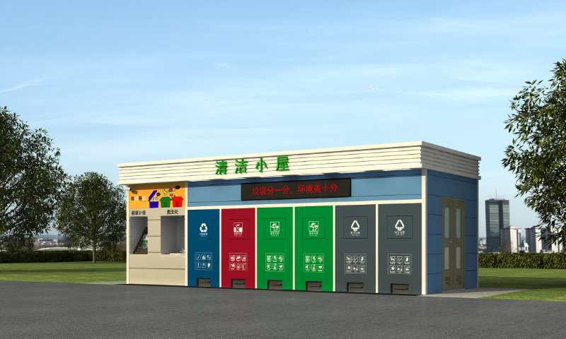 而且還在其基礎上增加了工具間、設備間及洗手池。方便工作人員清理及市民垃圾投放后清洗雙手。不僅如此,在捷士通環(huán)保垃圾分類房的外部還增設了帶有分類知識的宣傳欄,在垃圾桶及宣傳欄上配有垃圾分類的宣傳標語,廣大市民可以根據(jù)垃圾桶的提示標語,將廢棄的生活垃圾投放到對應的垃圾桶中,從而更加方便市民正確的進行垃圾分類投放。